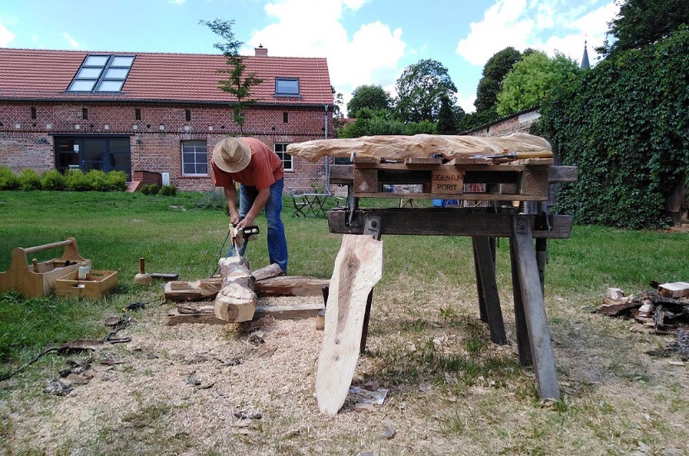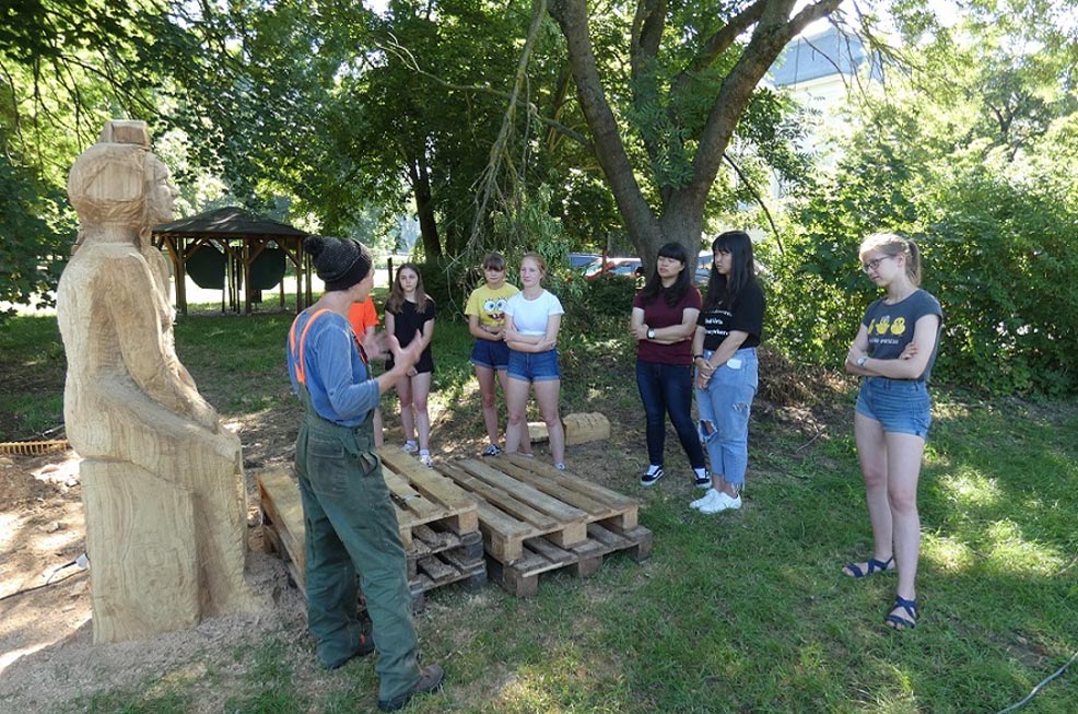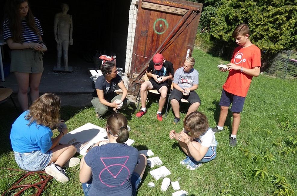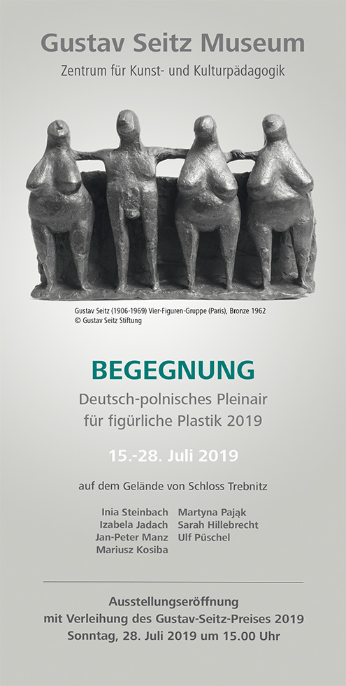 Die Gustav Seitz Stiftung hatte sieben Bildhauerinnen und Bildhauer aus Deutschland und Polen eingeladen, vom 15. bis zum 28. Juli 2019 unter freiem Himmel an Plastiken zum Thema „Begegnung“ zu arbeiten. Eine Auseinandersetzung mit dem Werk von Gustav Seitz war Bestandteil des Pleinairs. Zudem öffneten die Künstlerinnen und Künstler ihre Werkstätten für Kinder und Jugendliche des Sommer-Workcamps, welches zeitgleich im benachbarten Begegnungszentrum Schloss Trebnitz stattfand.