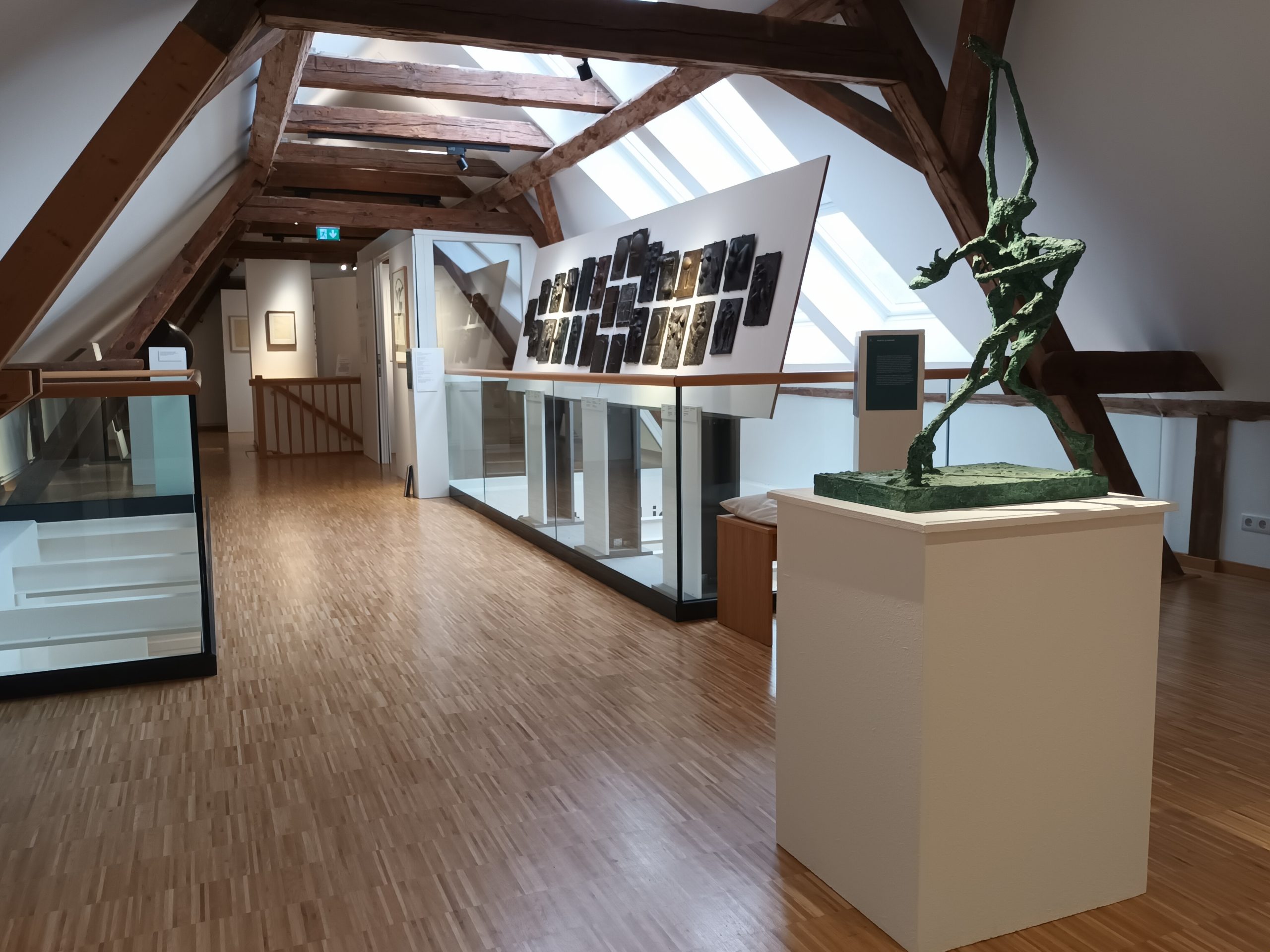 Vergänglichkeit und unaufhaltsamer Wandel hingegen charakterisieren die außergewöhnlichen, auf Wesentliches konzentrierten Torsi, die Seitz Anfang der 1960er Jahre schuf: Der Kontrast von Leiblichkeit und Fragilität des stehenden Weiblichen und des Männlichen Torsos (1963), beide ohne Kopf, erfährt in der liegenden Kleinen Flensburger Venus (1963) – die erfreulicherweise als Leihgabe vor Ort ist – eine besondere, in den Raum wirkende Steigerung. Neben der kleineren Bronze Catchertorso (1963) ist zudem Seitz’ monumentaler Geschlagener Catcher (1963/66) – unbestritten ein Hauptwerk der Bildhauerkunst des 20. Jahrhunderts, das lange vor dem Hamburger Kunsthaus aufgestellt war – fast originalgroß auf Atelierfotos präsent.