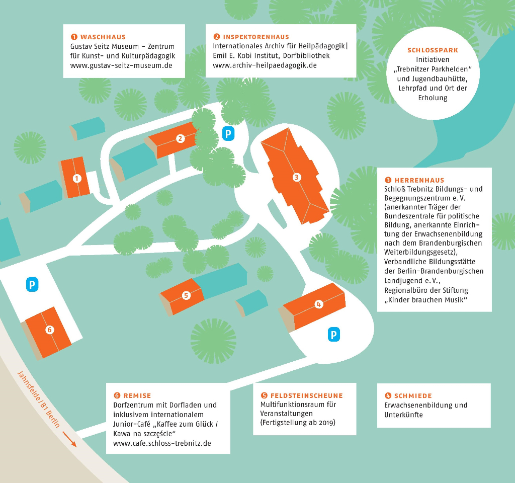 Das Museum liegt auf dem Campus Schloss Trebnitz in unmittelbarer Nachbarschaft zum Bildungs- und Begegnungszentrum Schloss Trebnitz.